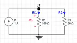 There are two junctions in the circuit. One bottom junction was labeled with ground. The top was labeled .