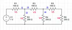 We are being told that the resistor and voltage source have values, but to work towards a symbolic solution. But rather than the resistors all being a separate symbol, they are all have a value of R or 2R. So in terms of symbolic solutions, the goal is to use and to represent these "knowns."