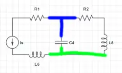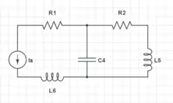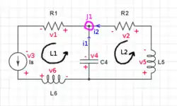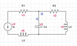 There are two trivial junctions where series components share the same current. One is between the current voltage source and . The other is between current source and the inductor.