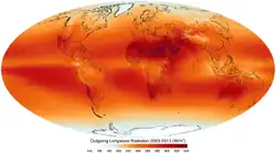 Emission means discharge or release of something. Huge amount of terrestrial energy is released through the vapour and clouds. In fact, the energy due to which the atmosphere was heated up, in general, is released through vapour and clouds as well.