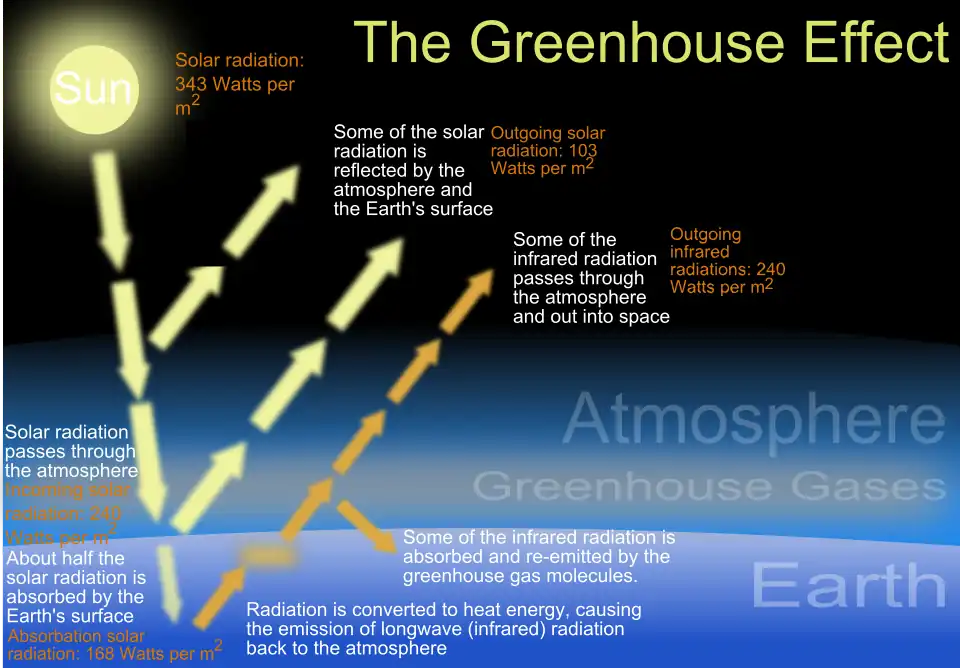 The terrestrial radiation is the most important method of atmospheric heating. Out of the total solar electromagnetic radiations reaching at the top layer of the atmosphere, approximately 49% reaches to the earth’s surface.energy is reaching the earth surfacein the form of shortwaveelectromagnetic radiations from the sun. The heated earth radiates back the same but in the form of long wave electromagnetic or infrared radiations.Terrestrial radiations are a continuous affair all 24 hours throughout the year. During day time when sun is in the sky, the solar short wave incoming energy is greater than the energy lost from the earth surface (land and water).warming.htmlIt is also very true that there is a gradual decrease in temperature with increasing altitude within the troposphere. Greater temperature is recorded at the ground surface as the earth is heated first and then the heating of atmosphere starts.