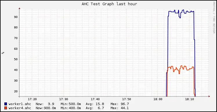 Ganglia consists of two major components: gmond and gmetad. Gmond is a monitoring daemon that has to run on every node that is supposed to be monitored. Gmetad is a daemon that polls other gmond daemons and stores their data in rrd databases which are then used to visualize the data in the Ganglia web interface. The goal was to configure Ganglia as shown in figure [fig:flo_ahc_ganglia_components]. The master runs two gmond daemons, one specifically for collecting data from the master, and the other one just to gather data from the gmond daemons running on the worker nodes. We installed Ganglia to /opt which is mounted on every worker via NFS. In order to start the gmond and gmetad processes on the master and worker nodes init scripts were used. The problem was, that there were no suitable init scripts provided by the downloaded tar ball. Our first idea was to extract the init script of the (older) packages of the Ubuntu repositories. That init script didn’t work as expected. Restarting and stopping the gmond service caused problems on the master node, since 2 gmond processes were running there. Instead of using the pid of the service they were killed by name, obviously no good idea. We tried to change the behaviour manually, but unfortunately that didn’t work. After the gmond process is started, the init systems reads the pid of the started service and stores it in a gmond.pid file. The problem was, that the gmond process demonizes after starting and changes the running user (from root to nobody). Those actions also changed the pid which means the .pid file is no longer valid and stopping and restarting the service won’t work. After a lot of trial and error we found a working upstart (the new init system used by Ubuntu) script in the most recent (not yet released) Ubuntu version 13.04. In that script we only had to adjust service names and make sure that the NFS partition is mounted before we start the service (start on (mounted MOUNTPOINT=/opt and runlevel [2345])). For some magical reason that setup even works on the master node with two gmond processes.