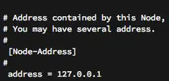 Figure 10.3: IMPORTANT [NODE-ADDRESS] must be commented. Here, the “node-name” must be entered, as well as the right address. When on a virtual machine, use the following address for the local environment “127.0.0.1”. It is important that [NODE ADDRESS] is also commented here!
