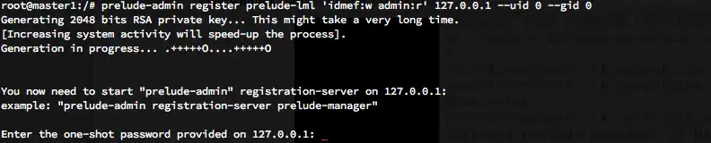 # prelude-admin register prelude-lml ’idmef:w admin:r’ 127.0.0.1 –uid 0 –gid 0