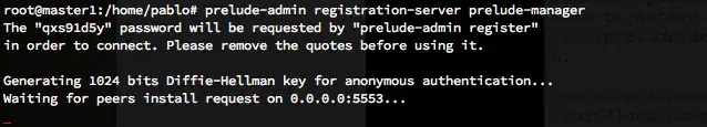 Figure 10.4: The manager now waits for the password This now awaits the entry of a on the server generated password. Since our Prelude-lml tool is running on the same master as the manager, a second terminal window should be used.