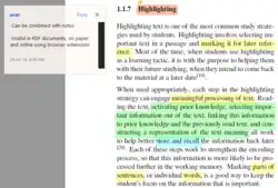 Highlighting engages meaningful processing of text that includes reading the text, activating prior knowledge, selecting important information from the text, linking this information to the previously read text, and constructing a representation of the text meaning.[5] Each of these steps strengthens the encoding process, so this information is further processed in the working memory. Marking parts of sentences, or individual words also keeps the student’s focus on the important information. There are many different theories as to why highlighting may be beneficial to learning. The cognitive processes used when deciding which of the text to mark results in students thinking more about the material leading to deeper processing of the text meaning when compared to reading alone.[4] Actively choosing which text to mark and which meanings are important changes the way that students read and re-read the text which makes the information more important and memorable [4].