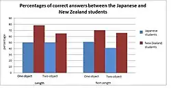According to Piaget, children’s cognitive development accelerates between ages 7 and 11. They can start using their five senses to distinguish objects, which can help them to identify two or three aspects of dimensions at once. For instance, Piaget used an experiment of pouring the same amount of liquid into different size containers. Children at this stage are able to notice the levels of liquid will be different based on the dimension of the container. Another major cognitive growth that occurs during this period is the ability of classification and seriation to separate objects.[9]Children learn classification by grouping objects based on similar features, and acquire the ability of seriation by categorizing objects based on their increased or decreased value, such as length, width, volume, etc. Even though they may have already acquired some basic arithmetical operations at this stage, they do not know how to apply these concepts into solving math problems. For example, when they are being asked to count the pieces that are made of 3 rows of 5 building blocks, they do not know how to apply multiplication while counting. In other words, the abstract concepts of arithmetic must be directly related to physically available elements and operations. This also implies that they are still not capable of setting up a consistent system based on measurement at this stage.