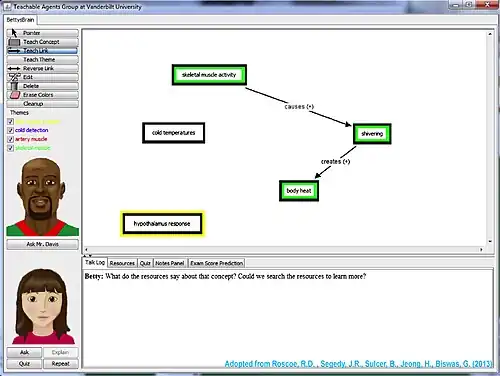 76. a b c d Roscoe, R.D. , Segedy, J.R., Sulcer, B., Jeong, H., Biswas, G. (2013). Shallow strategy development in a teachable agent environment designed to support self-regulated learning. Computers & Education 62, pp.286–297. doi:10.1016/j.compedu.2012.11.008. Retrieved from http://www.sciencedirect.com/science/article/pii/S0360131512002734