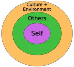 Since self-concept and self-efficacy, though distinct constructs, are related in their conception and in their effects on student achievement, consideration is given first to the literature on self-concept as a basis for observations on self-efficacy. Self-concept is generally viewed as an assessment of self-worth deriving from comparisons with the past performance of self and the performance of others.[3][4] Self-efficacy tends to be conceptualized as a context-specific assessment of one’s competence to perform a specific task. Self-efficacy theory suggests that feelings of self-efficacy have their origins in experiences of success or failure that arise through attempts to master actual tasks. In brief, Self-efficacy is how the individual perceives ones own abilities and the level of confidence for achieving goals from the perceived abilities. There are three domains of self-efficacy that differentiates in: task difficulty, generality of one's self-efficacy (self-efficacy in one domain is not consistent with self-efficacy in another domain), strength of one's efficacy judgments. Within those three domains, there are four factors that Bandura stated to effect self-efficacy. These factors are enactive mastery, vicarious experience, verbal persuasion, and physiological and effective state. Enactive mastery is related to the knowledge that an individual has obtained from previous experience. For example, if an individual has achieved mastery in math they are more likely to have a high self-efficacy. Achieving mastery contributes to the individual’s perception of ones ability in completing a task. Vicarious experience is watching others and learning from what was watched[5]. For example, if an individual watches a classmate or teacher demonstrate an equation on the board they may feel their ability to the problem on their own has increased. There will be more discussion related to this in the section entitled enactive and vicarious learning. Another factor is verbal persuasion which is having an individual convince another that they are capable of completing a task. Having another person or classmate tell another that they have the ability to do well on a task or encourage them, might boost their confidence and their perception of their ability on a task. The final factor, physiological state, can effect the individual’s self-efficacy. For example, if an individual is tired due to a lack of sleep, their perception of their ability to complete a math task might be low. Even though they normally have high self-efficacy in math. These four factors as well as others affect the individual’s self-efficacy.[6][7] As self-efficacy is closely related to the concept of reciprocal determinism in ways that the personal, environmental, social aspects influence self-efficacy and vice versa, this part of the chapter will look closely at the different aspects and implications of self-efficacy and factors that will correlate with each other.
