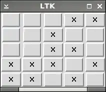 Here is a mock up of the video game Lights Out. We use the grid geometry manager to assemble an NxM array of buttons where each button is either ‘on’ or ‘off’. For simplicity sake we will represent on by an ‘X’ and off by no text. Whenever you click a button, it toggles the button and the four adjacent buttons between the blank and ‘X’ state. The goal is to change all of the buttons to blanks.