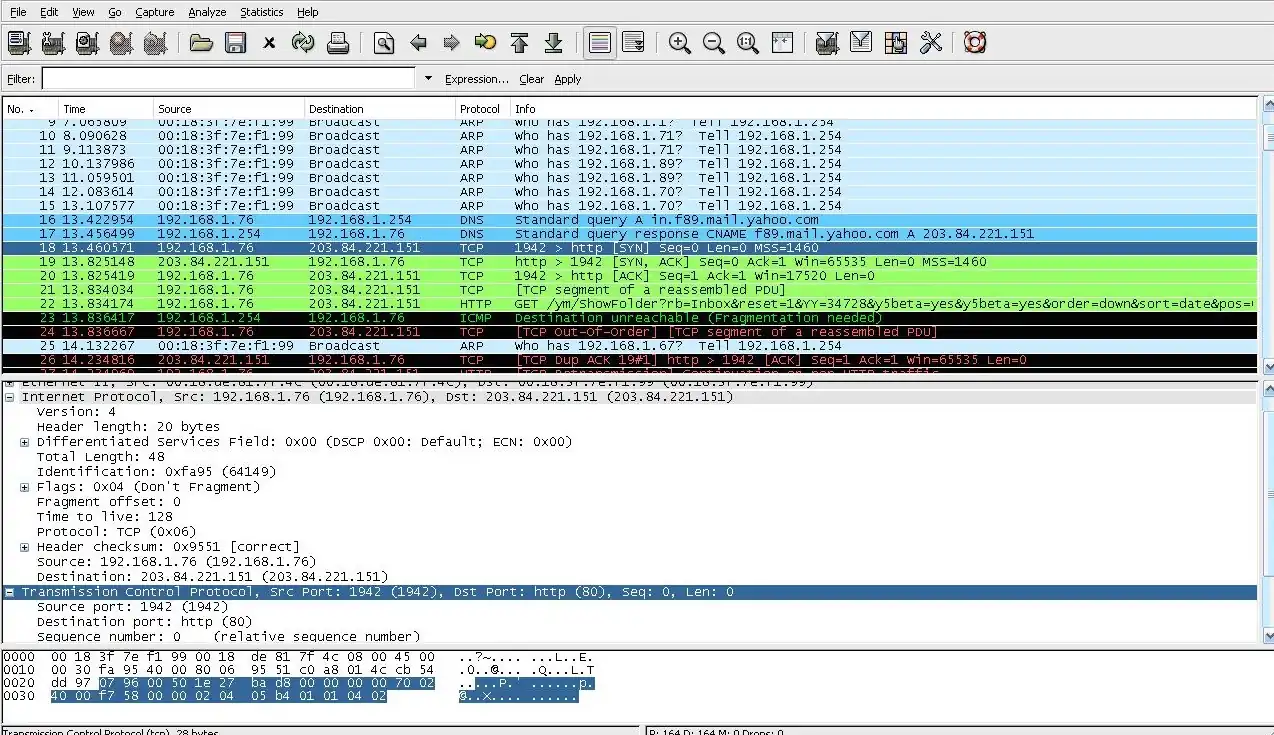 A sample HTTP protocol and yahoo messenger protocol message captured through ethereal is shown below