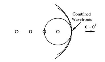 If all of the elements are positioned in such a way that the combined wave fronts reinforce along the array axis.