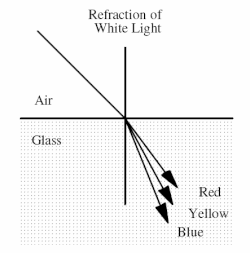 This constant is actually a function of the optical wavelength. Therefor, white light is separated into its various color components when refracted.