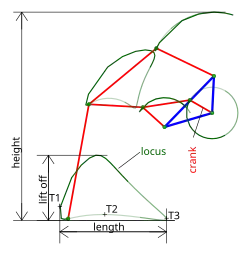 The circle[1] is a bit of a joke, as the circle is simplest walking mechanism and has the simplest locus. The wheel can also be seen as a special case of walking mechanism.[1] The stride length is infinitely small,[1] so normalizing does not makes sense.