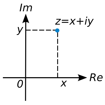 The horizontal axis (or -axis) indicates the real part and the vertical (or -) axis indicates the imaginary part.