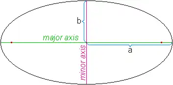 - The major axis has a length of and the minor one .