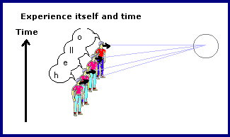 James’ mental time is probably not the same as physical time. Hermann Weyl, the Nobel prize-winning physicist, wrote that reality is a "four-dimensional continuum which is neither 'time' nor 'space.' Only the consciousness that passes on in one portion of this world experiences the detached piece which comes to meet it and passes behind it, as history, that is, as a process that is going forward in time and takes place in space" (Weyl 1918). In other words consciousness has a way of containing events in the same order as they occur in the world but seems to use a mental time that is different from physical time.
