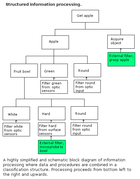 Filters contain processing agents of varying degrees of sophistication from simple sorting processes to "intelligent" processes such as programs and neural networks. It is also possible to arrange filters in the world beyond an information processor. For instance, an automatic text reading machine might turn over the pages of a book to acquire a particular page. A human being might stroke an object to confirm that the texture is as it appears to be and so on.