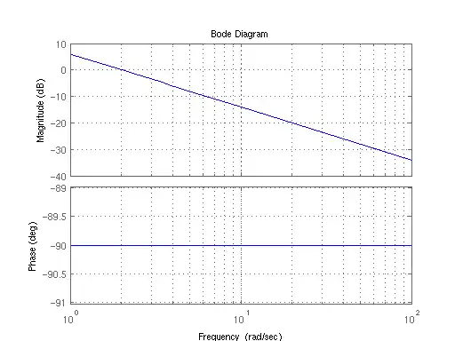 Draw the bode plot of a perfect integrator system given by the transfer function: