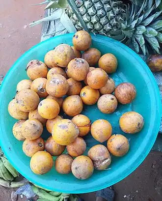The African star apple, also called agbalumo, udala, or udara, is a tree fruit native to tropical Africa. It is spherical and yellow-orange.[1][2] The skin and pulp are both edible.