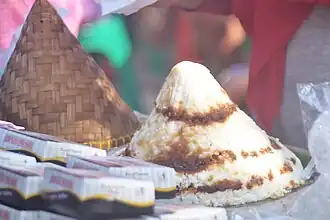 Awug is a traditional Sundanese cake. This cake is made primarily from rice flour, topped with grated coconut and a palm sugar syrup. Awug has a sweet taste and it is best enjoyed while warm. It is usually sold in the morning at markets or in the afternoon by street vendors.