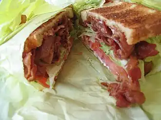 - A BLT sandwich can also be served on a (non-toasted) hot dog bun or larger variation thereof (although in this case the bacon, lettuce, and tomato should all be shredded.)