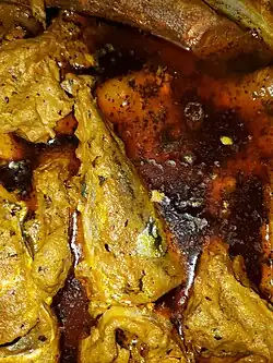 2. Place the assorted meat and dried fish in a pot. Add chopped onions, stock cube, and salt. Add a small amount of water and boil until the meat is tender.
