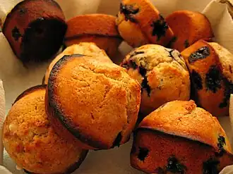 - In a small bowl, combine beaten egg, milk, and oil. Add this mixture all at once to the flour mixture. Fold in blueberries and stir just until combined. Do not overstir.