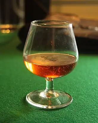 Depending on the region of production, brandy usually contains 40–60% alcohol by volume.[3] Compared to other liquors, brandies tend to be fruity in flavor—their exact characteristics will depend on the fruit used and whether/how long the brandy is aged, and the flavor mellows over time.[3][4] On rare occasions, brandy may be sweetened like liqueurs.[3]