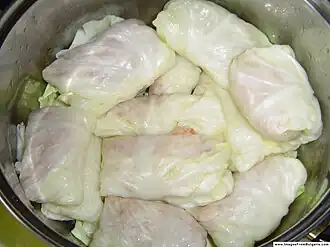 Cookbook:Cabbage Rolls in Yogurt Sauce (Sarmi)