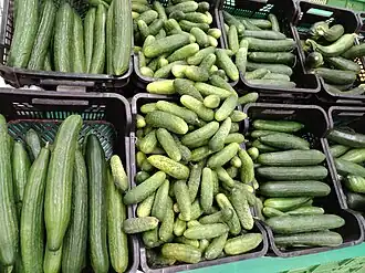Generally, cucumbers are divided into "slicing" versus pickling varieties—the former can be eaten raw, while the latter are typically only pickled.[1][2][5]
