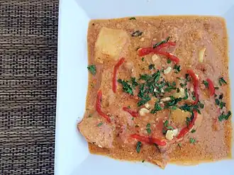 6. Mix in the peanut butter, tomato paste, chicken, and water. Let everything simmer until the sauce becomes thick and oil appears on top.