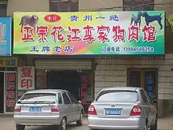 Li family's meat shop, advertising a "Guizhou specialty", in a small little mining / smelting town (Xialu Qu, 下陆区) between Daye and Tieshan, China.