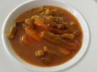 Egyptian okra stew is a popular and comforting dish in Egyptian cuisine. It features tender okra pods cooked in a rich tomato-based sauce, infused with aromatic spices. This stew is hearty, flavorful, and pairs well with rice or bread, making it a satisfying meal option.