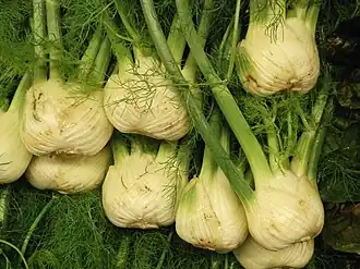 - Florence fennel/bulb fennel/finoccio: sweet variety with a large, bulbous stem base; very mild anise flavor and sometimes called "sweet anise";[1] used primarily as a vegetable[2][5][6]