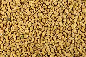 The seeds of the plant are light brown and resemble small bits of gravel.[1] Their characteristic flavor and aroma comes from sotolon,[2][3] which is reminiscent of caramelized sugar and imitation maple flavor.[2][3][4] They also have secondary notes that some describe as musty or mushroom-like.[2] The leaves are much milder in flavor than the seeds.[3]
