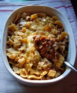 This is a traditional, and basic, recipe for Frito pie. Minor variants are common.
