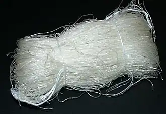 Glass noodles, also called cellophane noodles, are a general class of thin noodles made from vegetable starches.[1][2][3][4] They should not be confused with rice vermicelli.