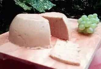 - Press the substance into a small, round form, to give it the form of a cheddar cheese. Unmold and serve.