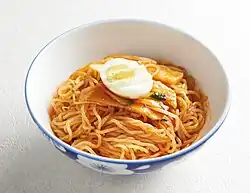 Jjolmyeon (쫄면 – literally "chewy noodles")[1][2] are a variety of wheat-based Korean noodle.