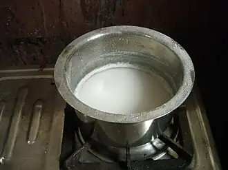 The solution is used in a few cuisines for its alkaline properties. For example, it can be used for nixtamalization and sugar processing.[3] It is also used in Thai cooking to enhance crispiness and firm texture in fritters and pickled/candied produce.[1][5]