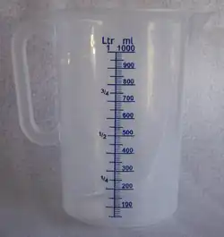 The liter (AE) or litre (BE), abbreviated l (or sometimes 'L' in the US, Canada and Australia), is a metric unit of volume. It is equal to 1000 ml, also known as 1000 cm³ (informally cc). The litre is a bit larger than a US liquid quart. One liter of pure water weighs 1 kilogram at 4°Celsius.