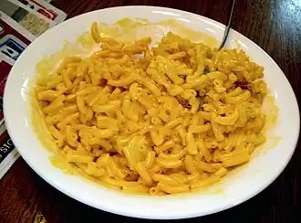 Macaroni and cheese is a dish combining pasta (usually macaroni) with cheese or a cheese-based sauce. It can be made by tossing cooked pasta in a cheesy white sauce or made as a baked casserole.
