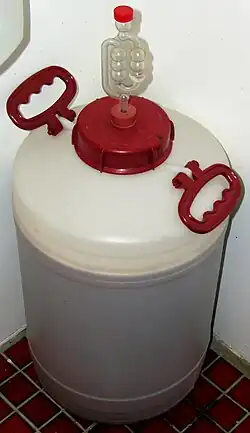 - Fermentation vessel—preferably a glass carboy—with an airlock and a rubber bung (can usually be found at a brewer's supply store)