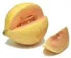 Casaba — Unlike the other melons, casaba melons do not have an aroma. This is a large melon that is pale yellow when ripe and has white flesh with a sweet taste. This melon peaks in the fall, but starts showing up in markets in July through December.