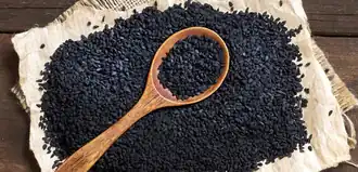 Nigella is a small, black seed of the plant Nigella sativa. Is is used as a spice across the Middle East and South Asia, providing a bitter taste and a faint smell of strawberries. It is one of the spices that make up the Bengali Five-Spice Mix, Panch Puran.