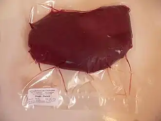 Ratite meat is sold as steaks, fillet, medallions (small coin-shaped pieces of meat), roasts and ground meat. The most tender meat comes from the thigh or "fan"; meat also comes from the drum and forequarter.