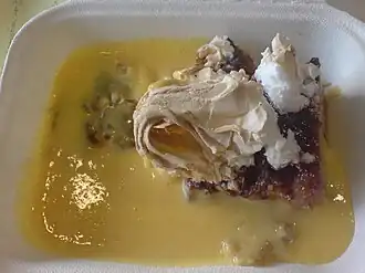 - Spread the meringue over the top of the pudding. Return to the oven and bake for 15 minutes until the meringue has browned.