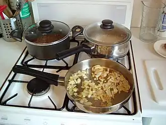 8. Fry the onion in olive oil until crisp and deeply golden brown (this may take a while but will result in much fuller flavor).