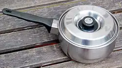 A saucepan is a cooking vessel generally used on top of a range for heating food and/or reducing sauces.
